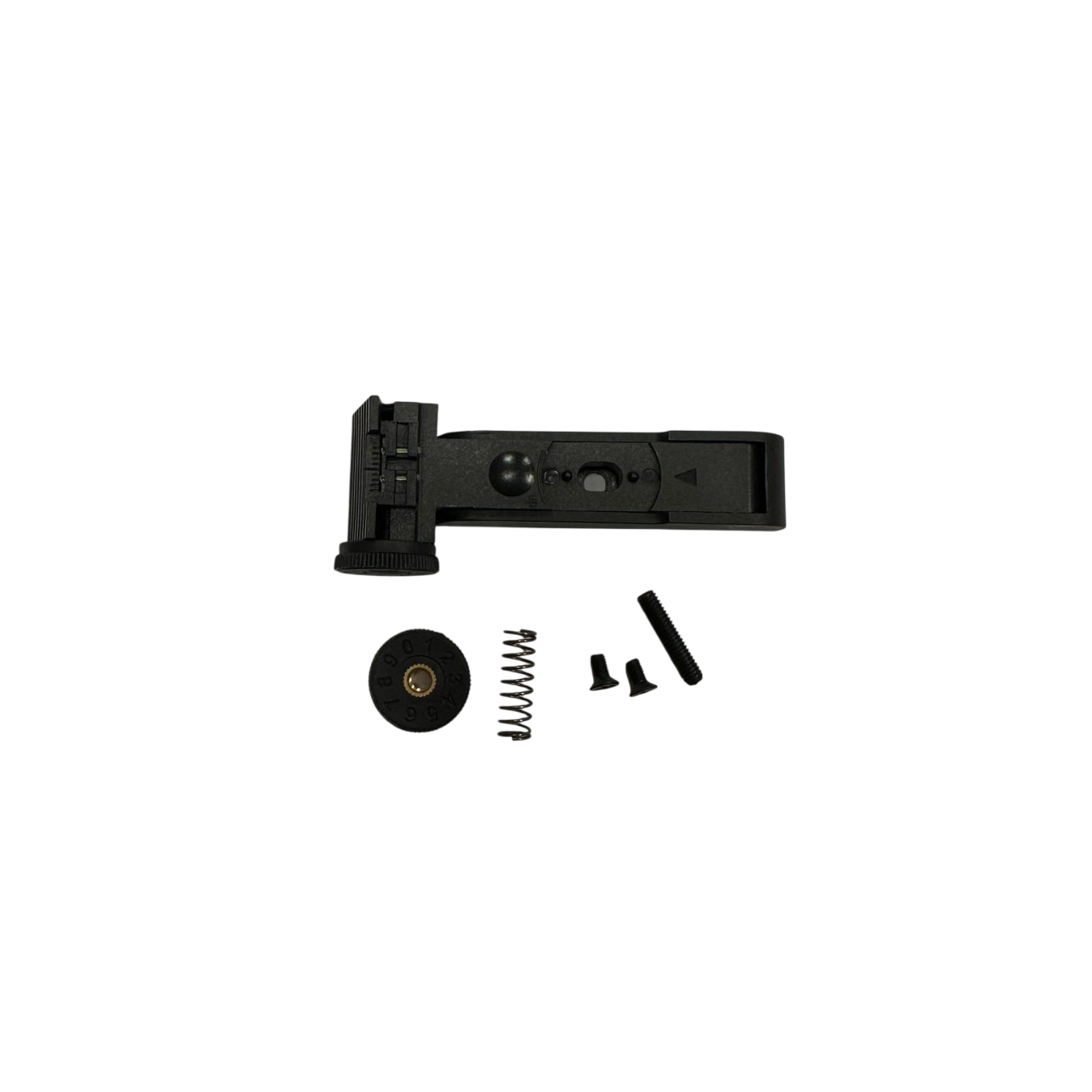 El kit completo de alza de mira para la Snowpeak GR1250W está diseñado para sustituir el conjunto original de miras traseras de esta carabina de aire comprimido. Gracias a este repuesto, es posible recuperar la funcionalidad completa del sistema de puntería sin necesidad de instalar óptica.